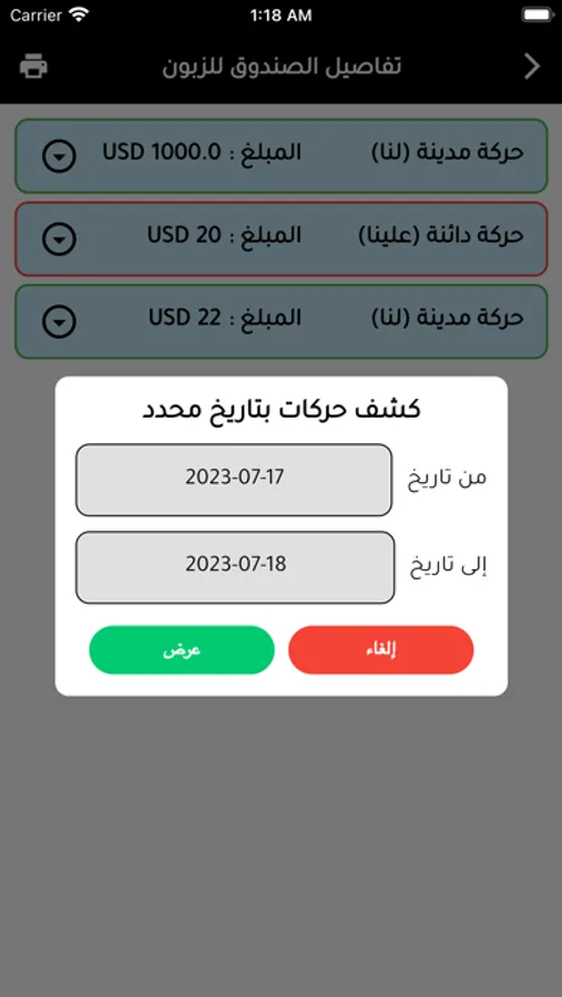 - فلترة على الحركات المضافة وطباعتها .