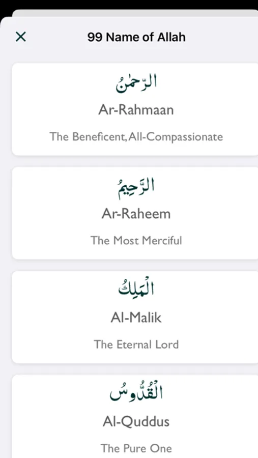 Simple and Easy to use: Our user-friendly interface makes it effortless to explore and navigate through the names of Allah.