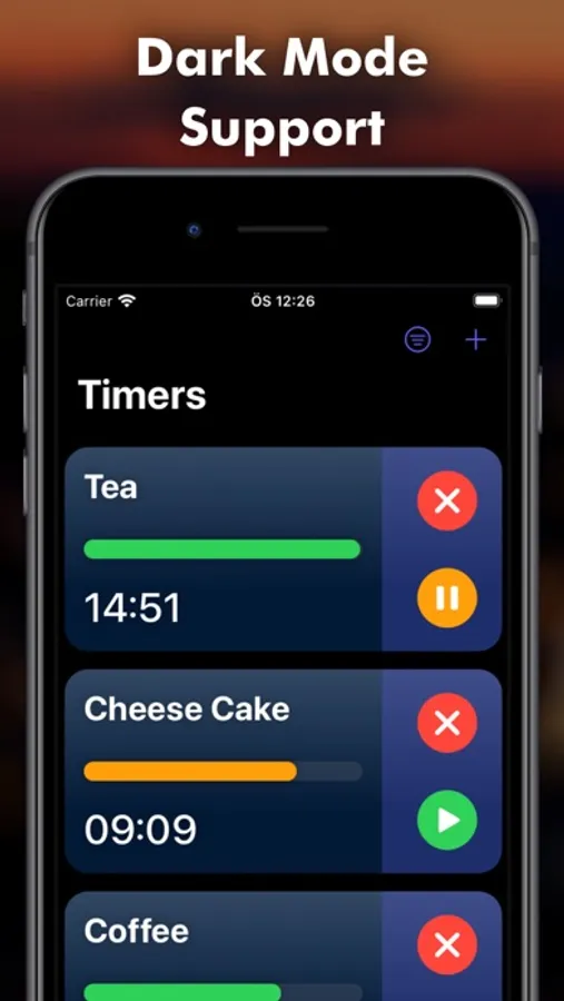 Set and run multiple timers simultaneously. Runs in background and notifies you when your timer is done. Does not interrupt your workflow while you using other apps. Includes live activity support.