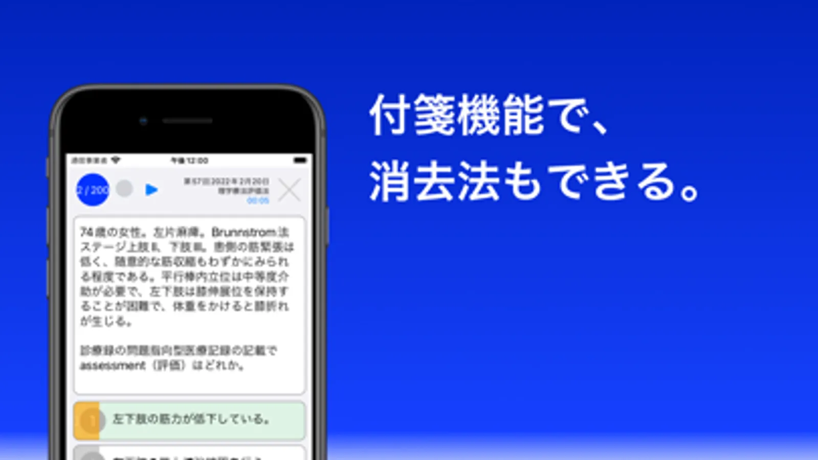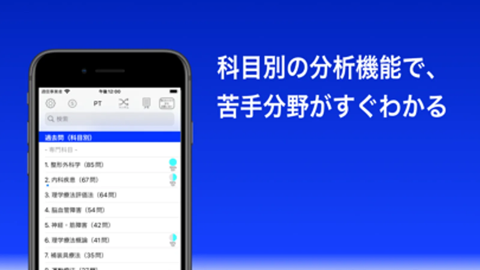 理学療法士の過去問をアプリ化。過去問検索やマイリスト機能。ランダム10問テストなど、受験したときにあったら良かったと思う機能を搭載しています。