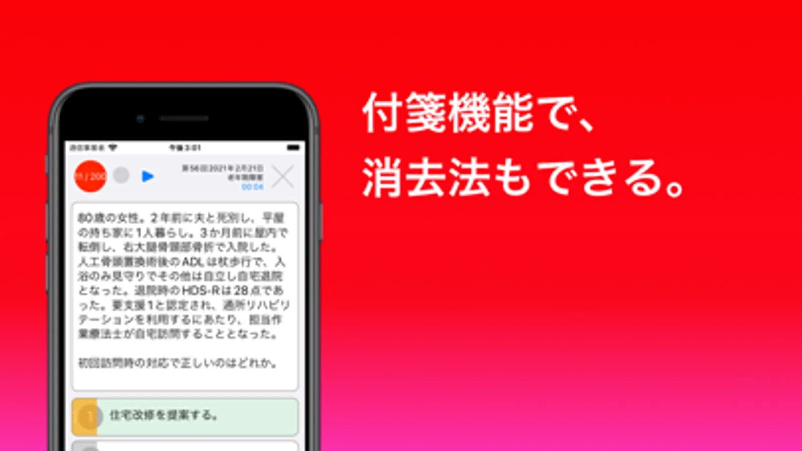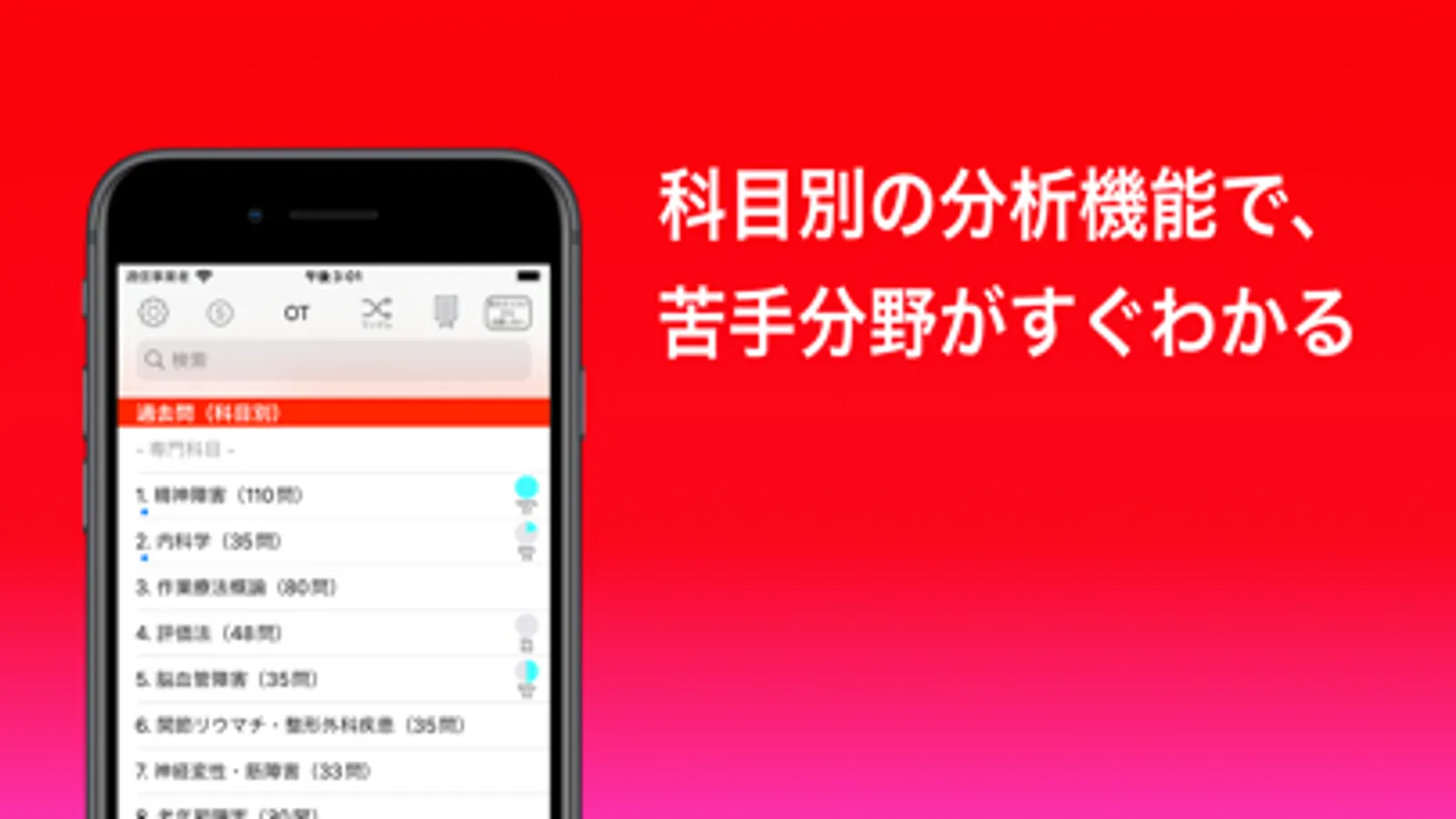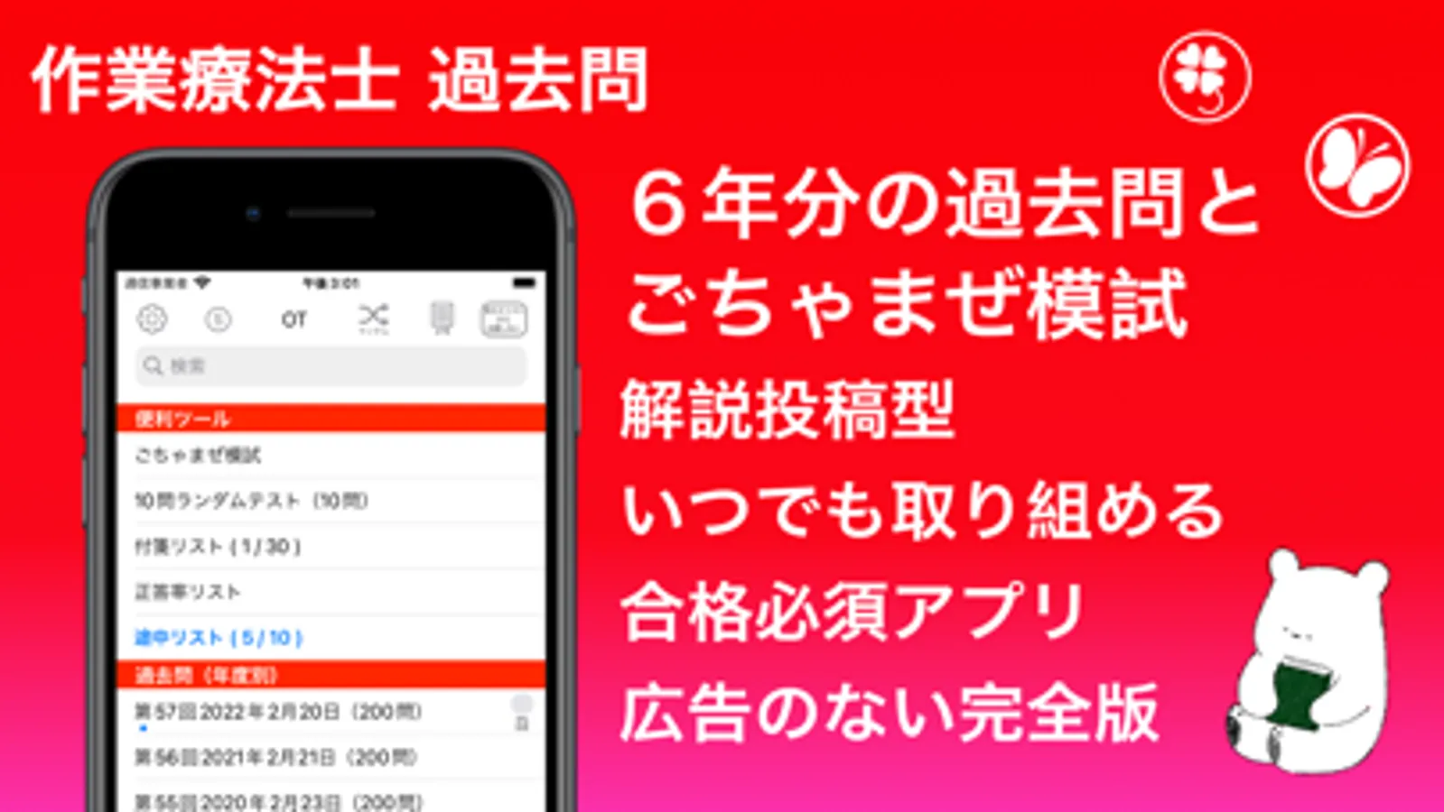 作業療法士の過去問をアプリ化。過去問検索やマイリスト機能。ランダム10問テストなど、国家試験を受験した時に、あったら良かったと思う機能を搭載しています。広告がなく、スムーズに勉強することができます。更新も有料版を優先して行います。