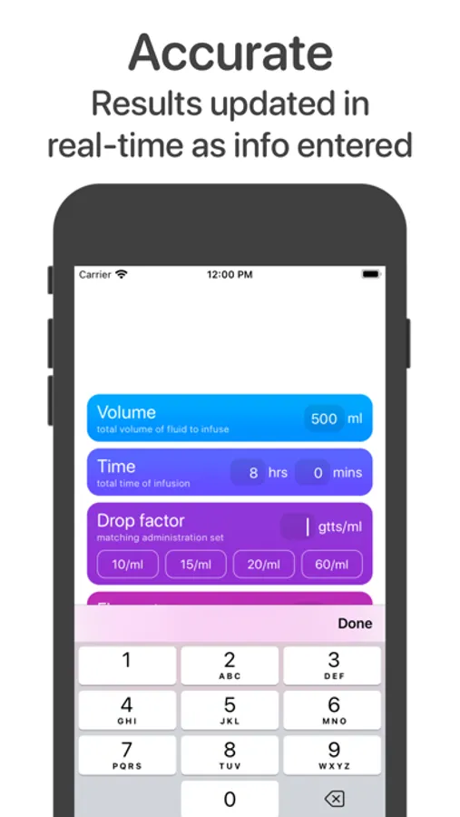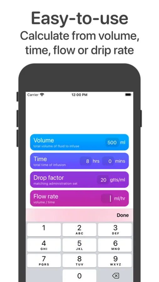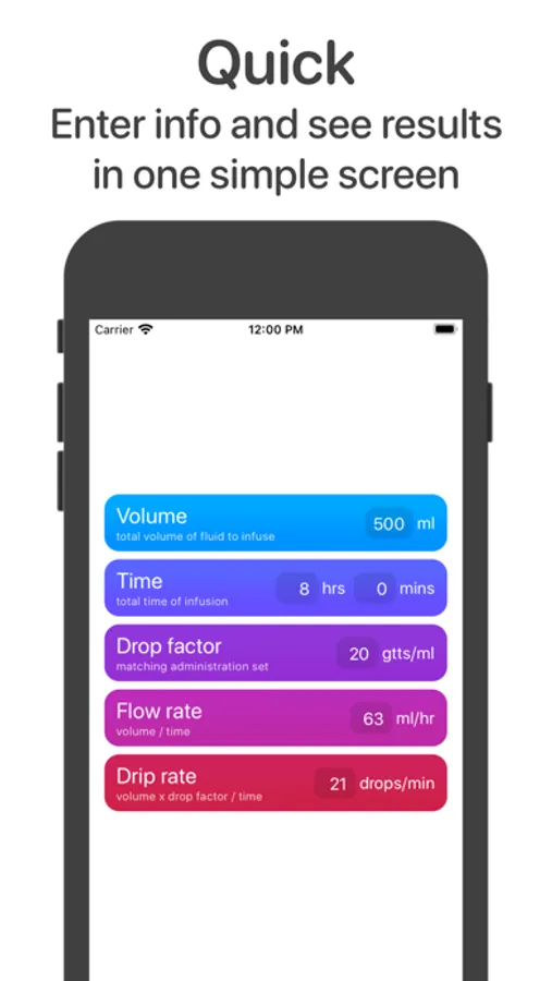 Quick, accurate, easy-to-use IV drip rate calculator for healthcare professionals managing IV gravity infusions.