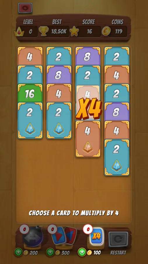 3. Card X4: Multiply the value of a card by 4, increasing its potential.
