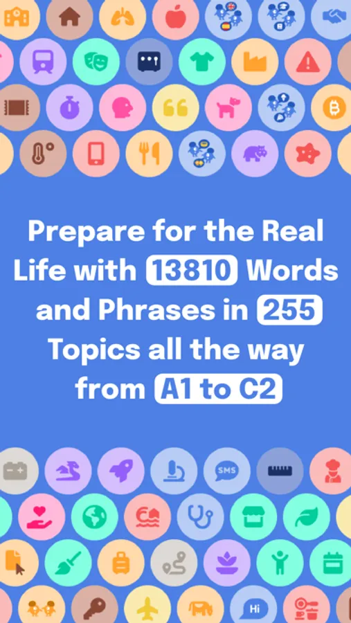 Prepare for Real Life with 13810 Spanish Words and Phrases in 255 Topics from A1 to C2