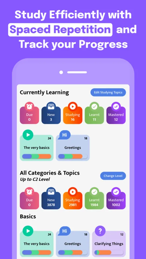 Filter and Study by Levels (A1, A2, B1, B2, C1, C2)
