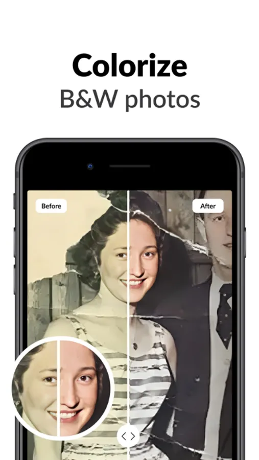 Colorize nostalgic, old, back & white family photos and make them new again. Bring color to any photo with only one tap.