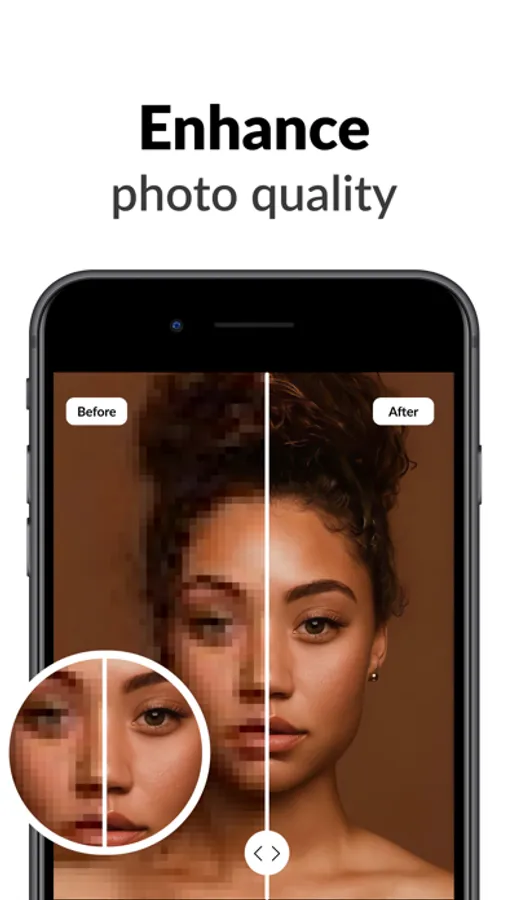 Upscale images in one click, fix blurry ones with better quality and improve photo quality with our photo cleaner and photo quality enhancer.