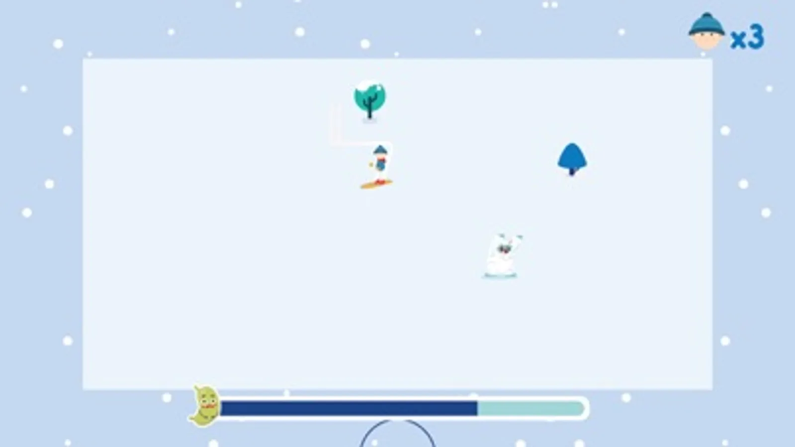 Move the snow monster to attack the ski adventurers and eat them to fill their stomachs to avoid the cold on the snowy mountains, every time you lift your feet to move, it will consume stamina, causing the food in the stomach to be consumption.