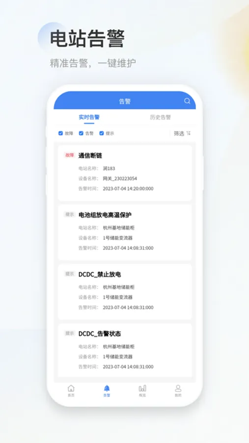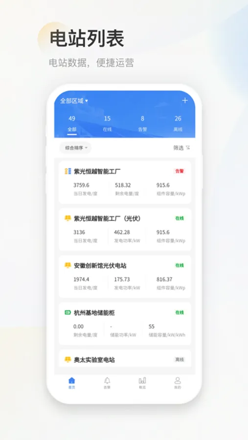 H3C能源云提供运营分析和移动运维服务,是web端功能的延伸。提供的服务主要有:电站接入、远程参数配置、设备监视、电站概览、告警推送、常见问题、电站报表等