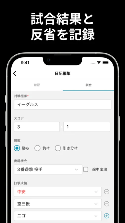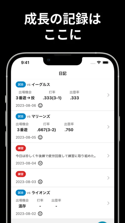 日々の練習や試合成績を記録・可視化して、成長スピードを加速させませんか?