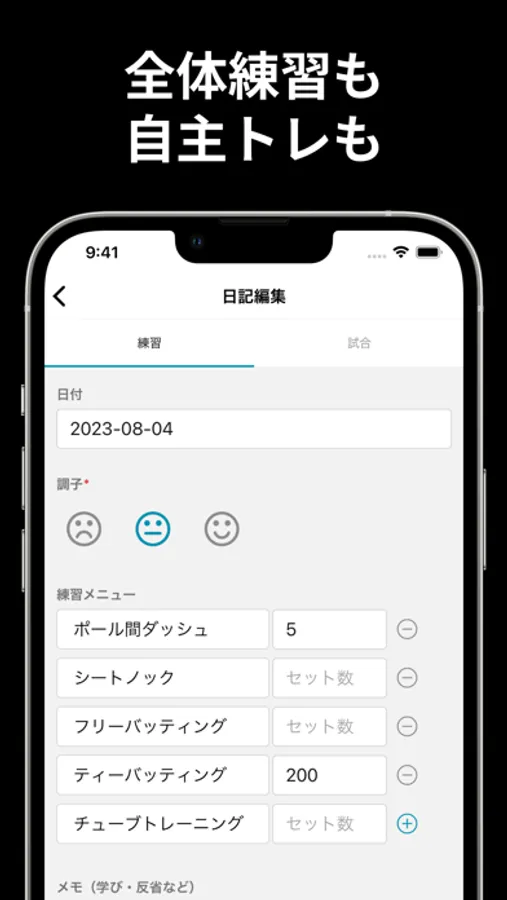 練習メニューや試合の振り返りを記録することで、自身の状況を客観的に把握することができます。