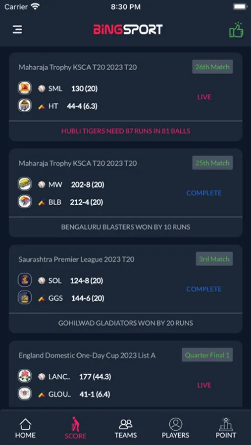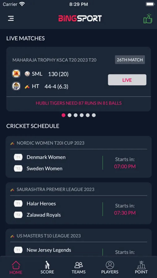 ›› 'Bingsport' app, Live coverage of all major cricket tournaments around the world, including:-