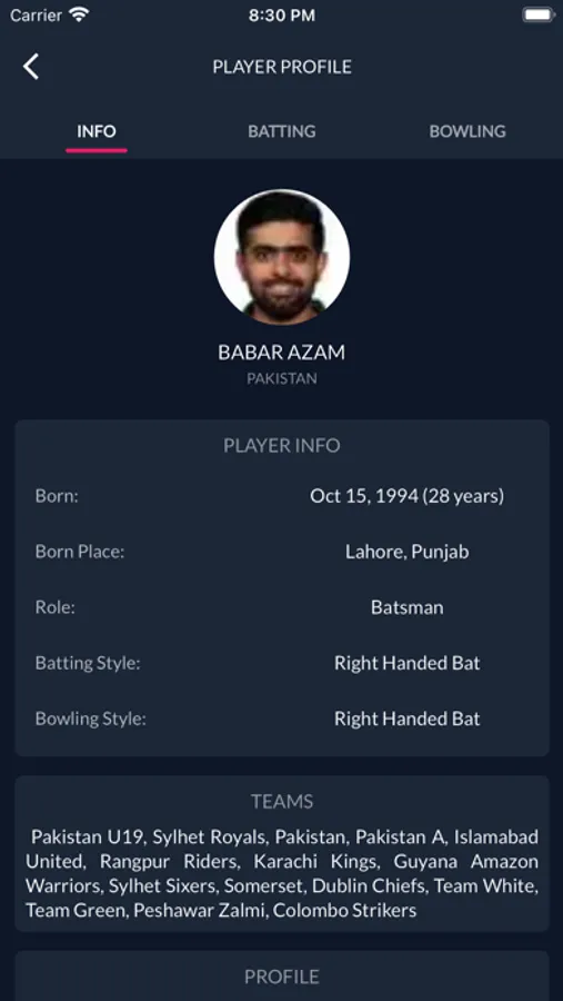 » Get Player Profile - Runs, Wickets and Everything Else.