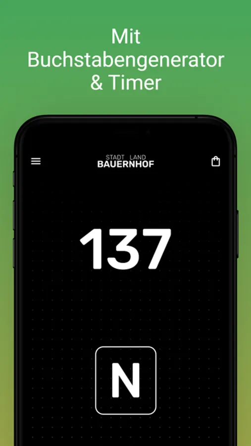 Keine Chance auf Flunkern! Die offizielle App zum Spiel "Stadt, Land, Bauernhof" bietet mit dem Buchstabengenerator und dem eingebauten, anpassbaren Timer die perfekte Erweiterung zum Spiel und verhindert, dass Spieler sich vorher bereits Buchstaben überlegen!