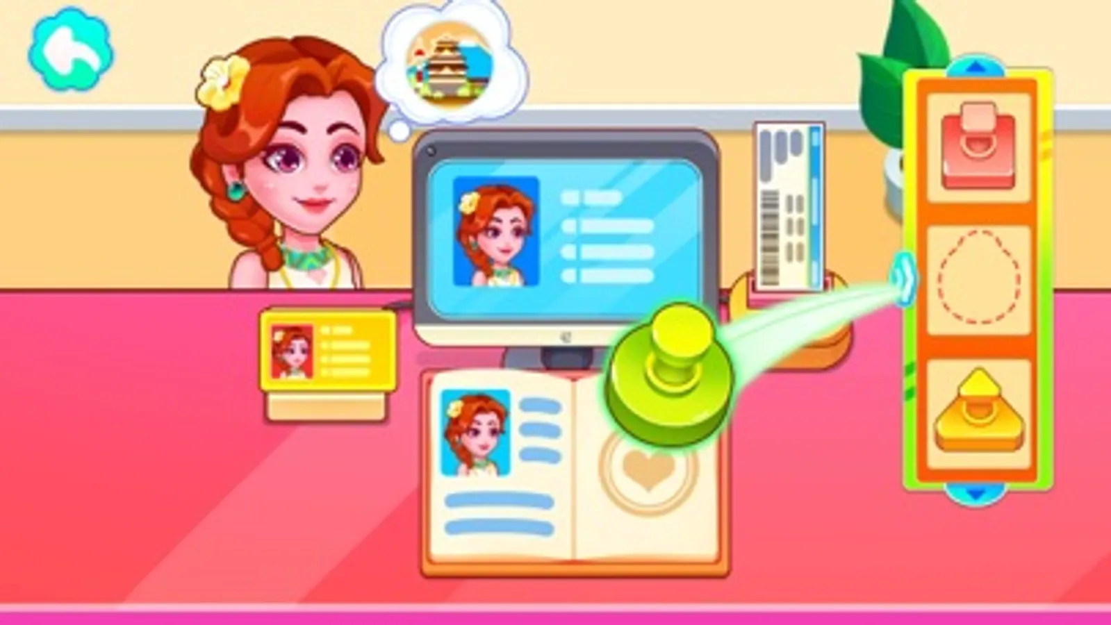 Here, you are the working staff to handle boarding passes, verify passenger information, and remember to stamp only after checking and confirming that there are no issues!