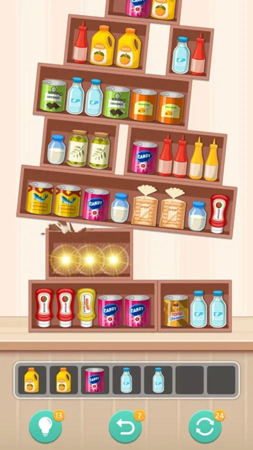 • Strategic Categorization: Strategize your moves to group goods efficiently, creating powerful combos to clear the board and achieve high scores.