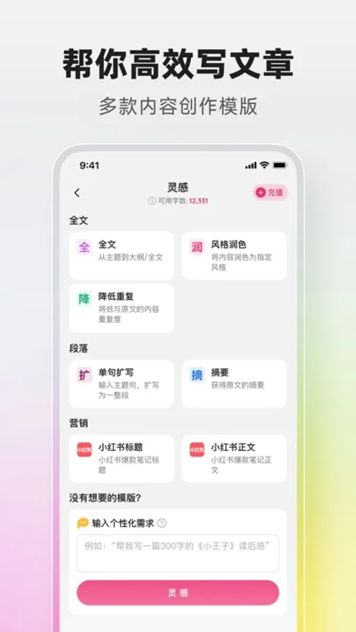 无论您是要写长篇还是标题,都可以帮您高效完成写作任务!