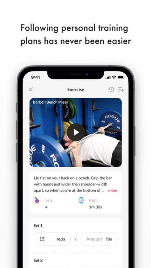 Once you’re in a plan, you can simply swipe left through exercises to move throughout the program. At the bottom of each screen you'll see a workout timer and the ability to record sets, reps, weight, and time. Each exercise comes with a photo & video so you’re never left in the dark when it comes to form on specific exercises. Recording your fitness programs in the program will help let your trainer know exactly how hard you’re working to achieve your fitness goals.