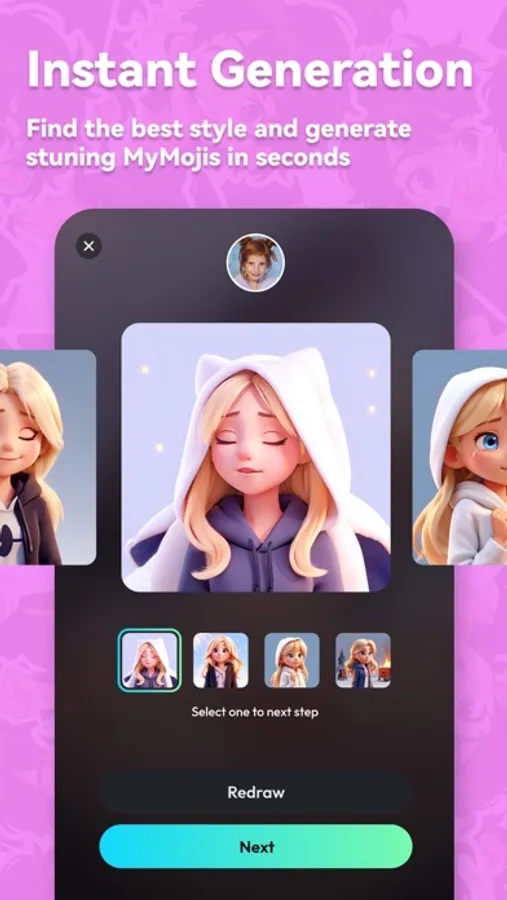 Select your favorite style and watch MyMoji Keyboard work its magic within seconds! Generate stunning, eye-catching MyMoji designs in the blink of an eye.