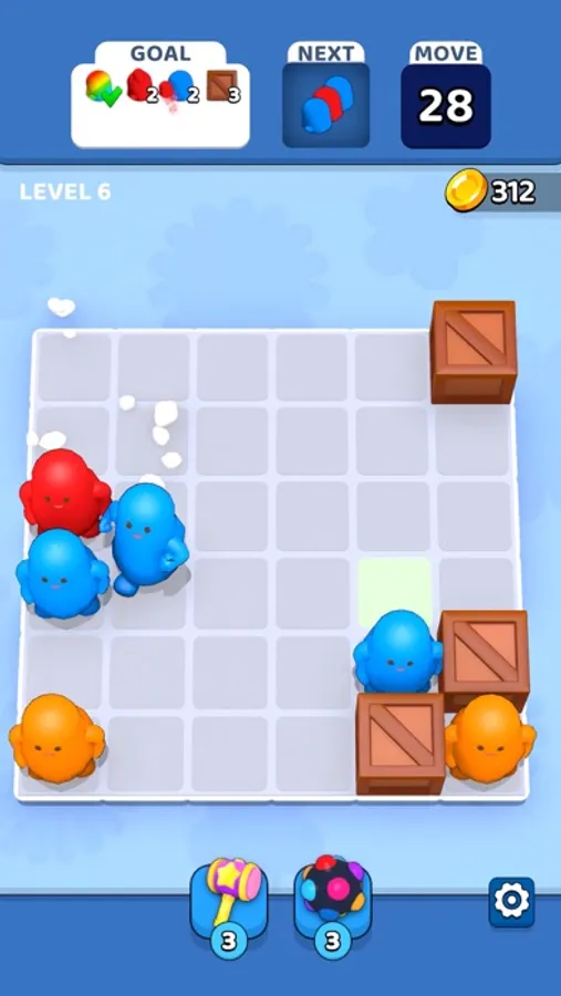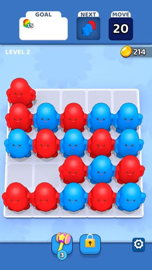 Tap or drag objects on grids and try to match at least 3 same colors. There are jokers so you can use a joker if you are missing one color. After every move 3 new objects come, so be careful board is getting crowded unless you blast colors. Have fun blasting around!
