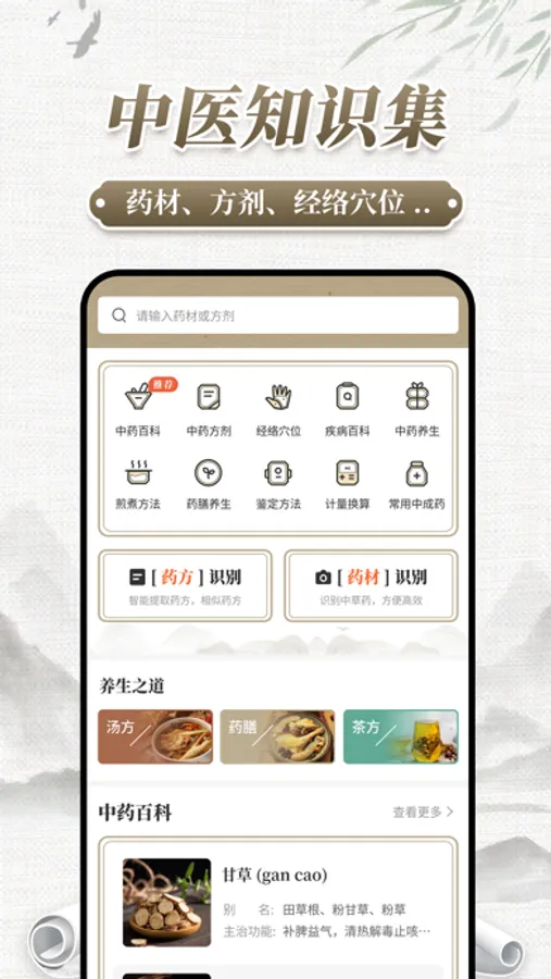 中药识别收录了大量中药药材和历代可查中药方剂,还包含疾病百科、经络穴位图解、药膳养生、常用中成药以及药材鉴别方法与中药识别工具,是医生、中医爱好者、普通家庭日常用药和养生的小助手!