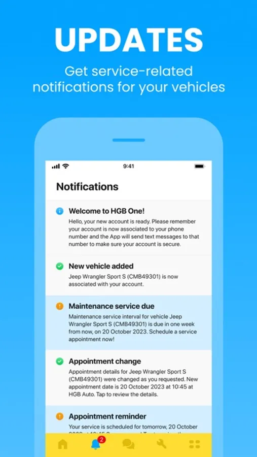- Get Notifications: Is your vehicle due for a maintenance service interval? Enable in-App notifications and receive updates ahead of time.