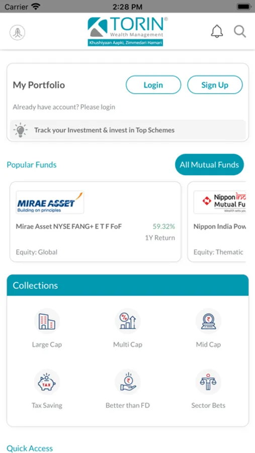 Torin Wealth is one-stop shopping for all your Wealth Management needs. You can use this state of the art app to stay on top of your Complete Financial Portfolio with all assets:
