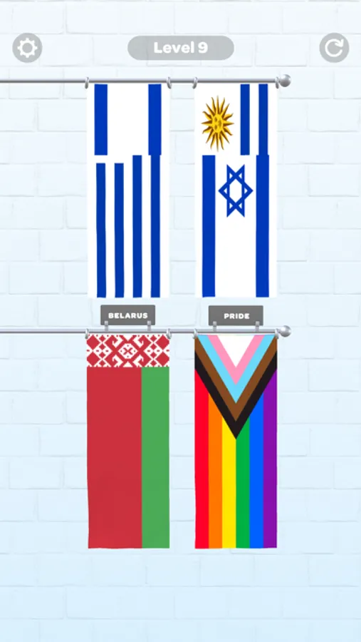 Flag Sort is a sorting puzzle game where you make country flags and colors by rearranging their parts correctly.