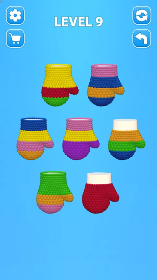 Personalize your sorting experience with our fun puzzle game! Earn rewards by completing color games and use them to pick the yarn type. A wide choice of yarn—from puffy to beaded—will help you color match every puzzle. You can also switch the items and try to color sort shorts instead of mittens. Explore endless options in our sorting game!