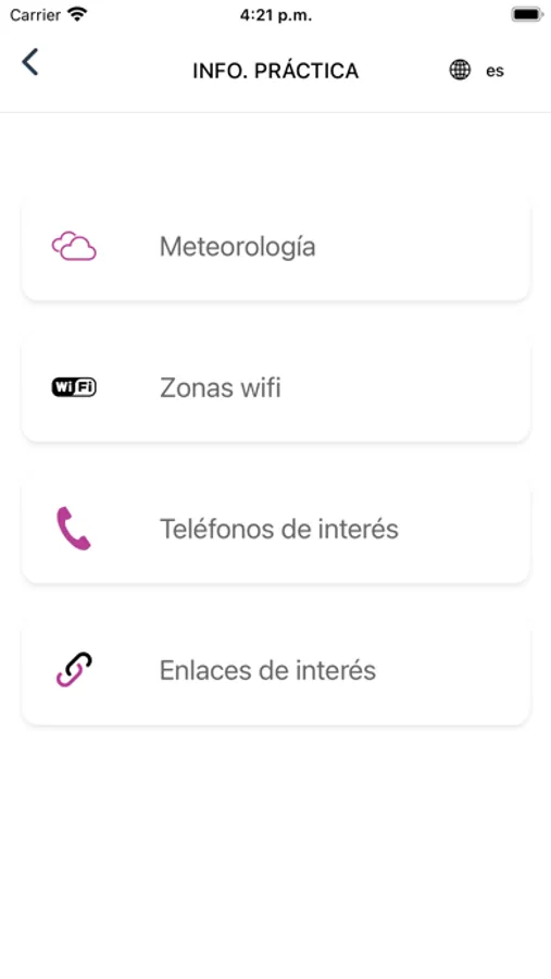 • Obtén información práctica sobre el clima, zonas de Wi-Fi y números de contacto importantes.