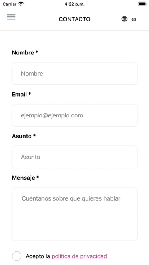 • Ponte en contacto fácil y rápidamente a través de nuestro formulario de contacto.