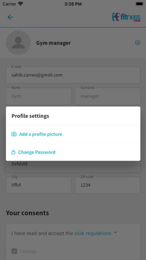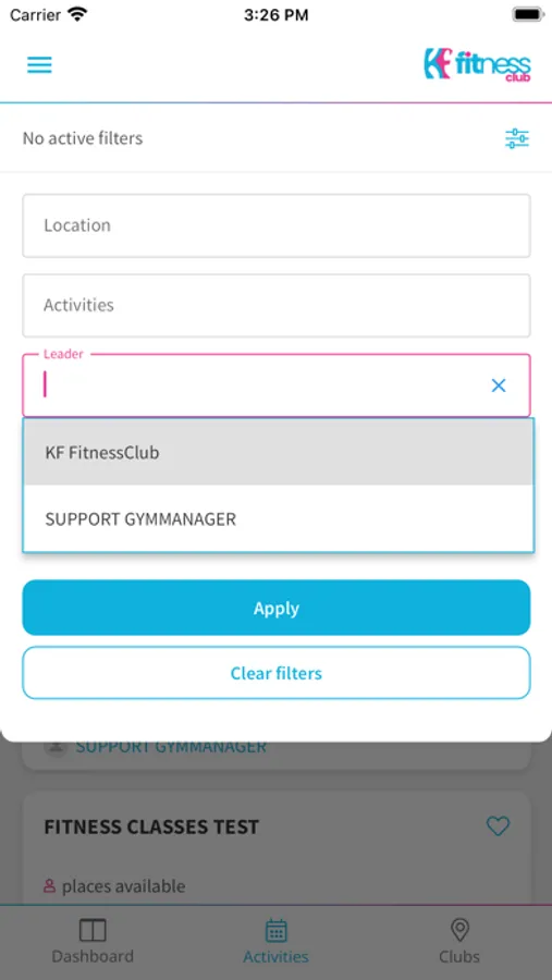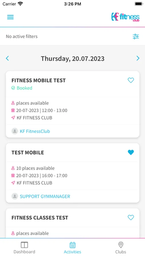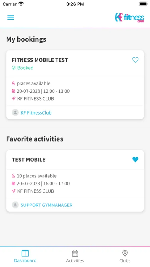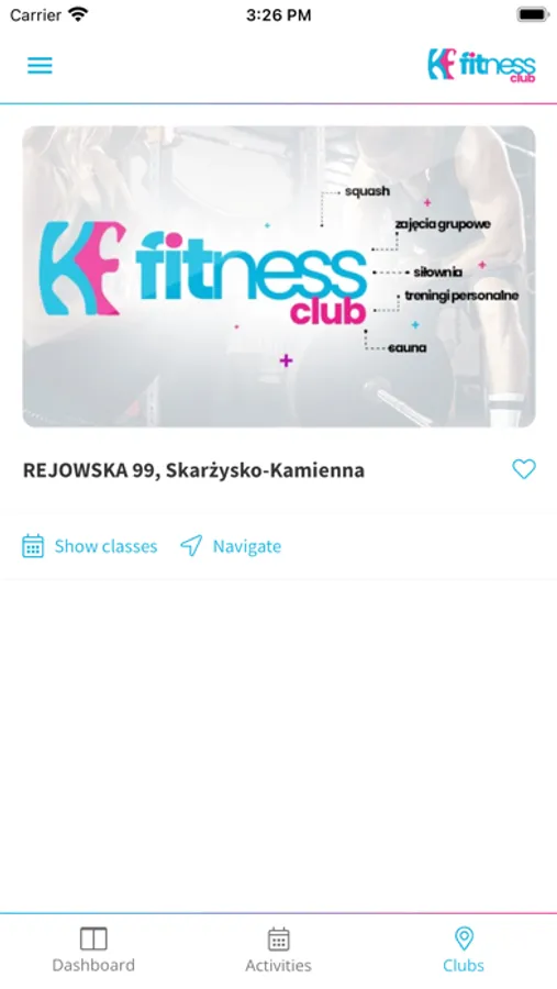 Aplikacja dla klubowiczów KF Fitness Club.
