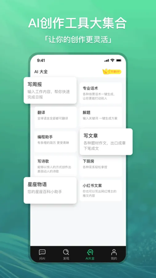 ● 职场精英:AI写方案、周报、日报,翻译助手