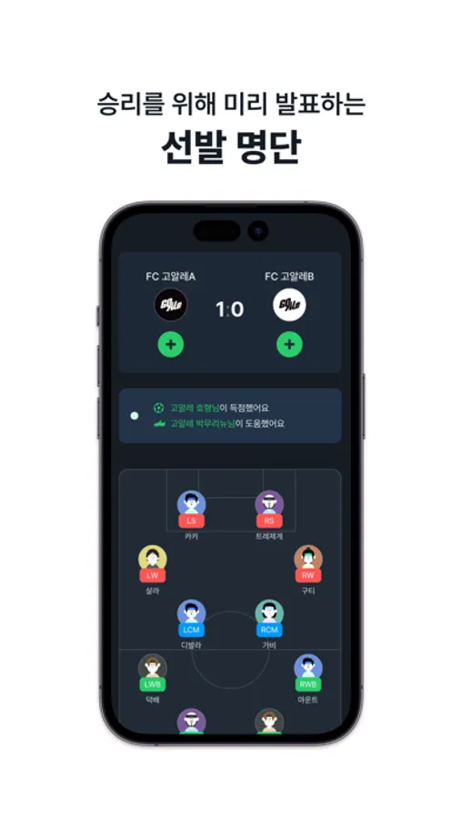 개인과 팀이 성장하면 축구가 더 재밌어질 거에요. 더 많은 승리와 도전을 할 수 있을 거예요. 여러분의 축구 커리어 이제 고알레가 관리할게요