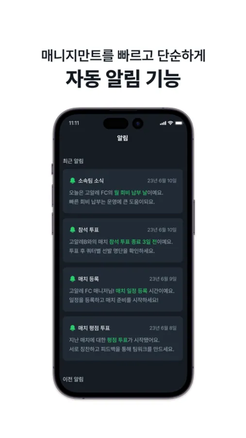 여러분의 축구 라이프를 간편하고 체계적으로 즐길는 문화 만들 수 있게 할게요.