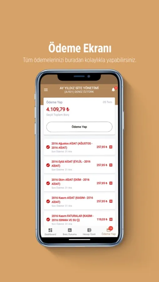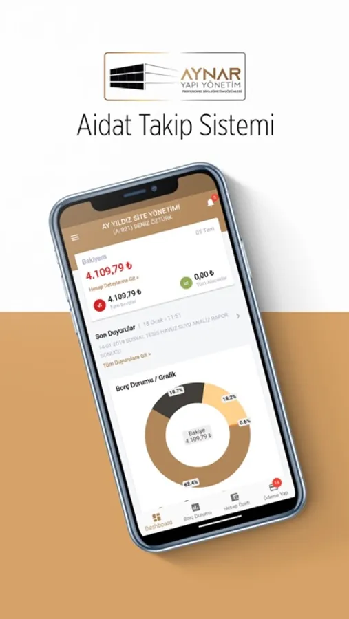 Aynar Yapı Yönetim Profesyonel Site ve Apartman Yönetimi hizmeti vermekte olduğu site sakinleri için; Aidat vb. borçlarını takip edebilecekleri, kredi kartı ile mevcut borçlarını ödeyebilecekleri mobil uygulamadır. Yönetimcell'in Aynar Yapı Yönetim için geliştirilmiş uygulamasıdır.