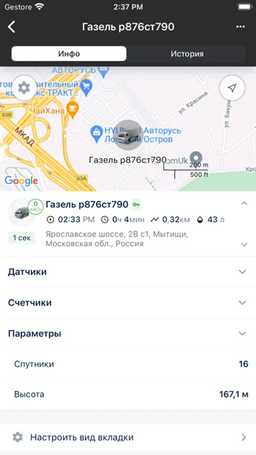 - Отслеживание местоположения вашего транспорта на интерактивной карте с высокой точностью.