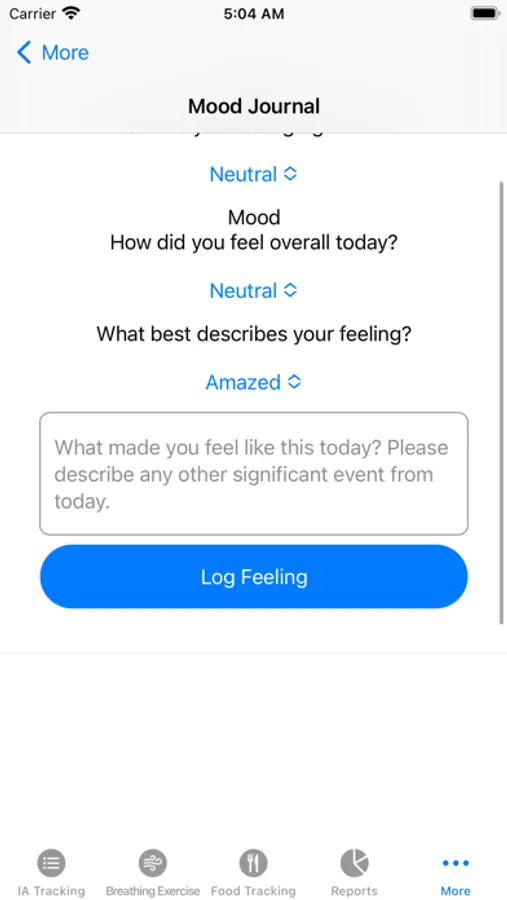 Track your Interoception Activity, monitor your eating habits, and log your mood with our user-friendly interface. Benefit from our unique breathing exercises guided by visual cues, helping you maintain calm and reduce stress.