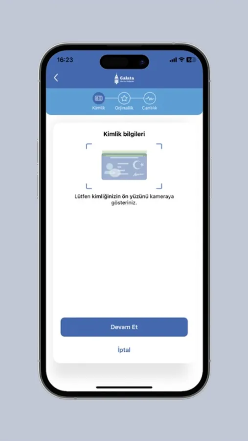 Yeni tip (çipli) kimlik kartınızı kullanarak kimlik tarama, doğrulama ve görüntülü görüşme adımları ile anında müşteri olmanızı sağlar.