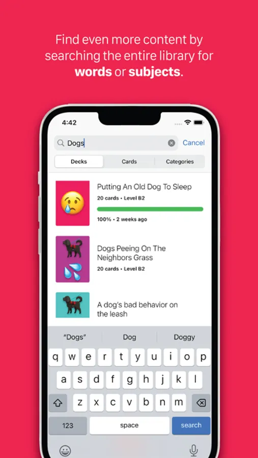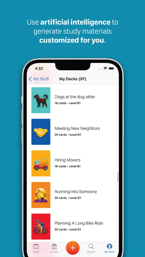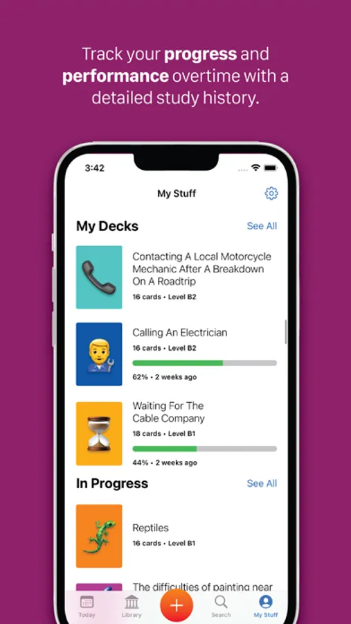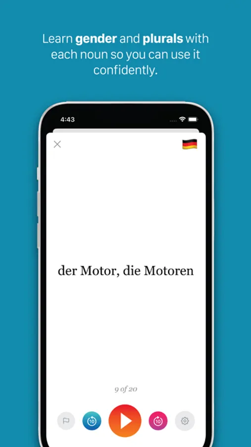 The customizable study experience offers powerful and flexible tools that help you acquire knowledge properly by learning gender, plurals, pronunciation and context with each new vocabulary word. You can also sort, shuffle and filter each deck to study, review and quiz yourself until you have it down pat.