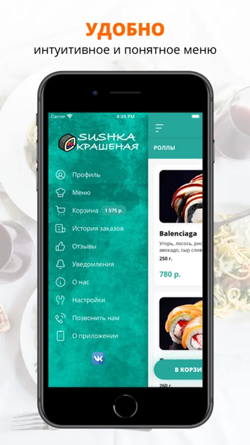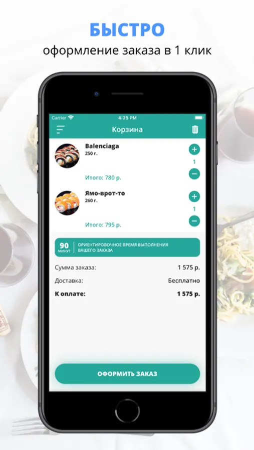 Скачивайте наше приложение, оформляйте заказ и наслаждайтесь любимой едой, где бы Вы ни были! Приятного аппетита!