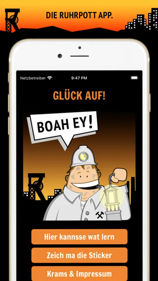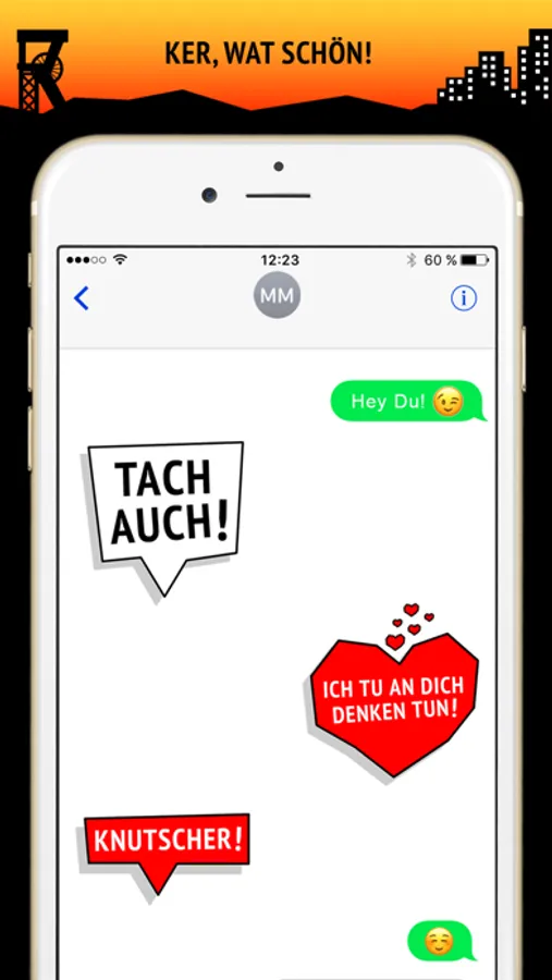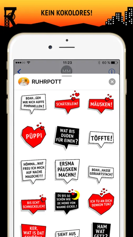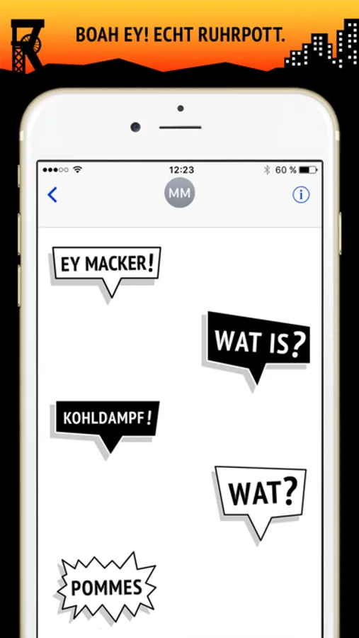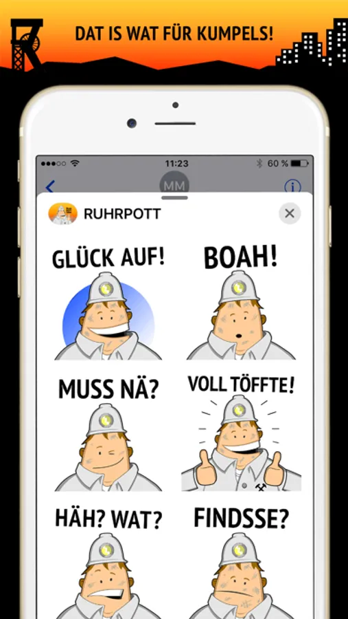 Schick deine Kumpels do ma so lustige Ruhrpott Stickers. Die werdn Augen un freun sich sowat von!