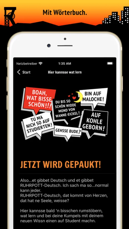 Also…mach hinne und tu ma die Stickers auf dein mobilet...Dingenskirchen…äh…Mobile laden.