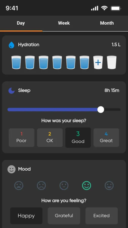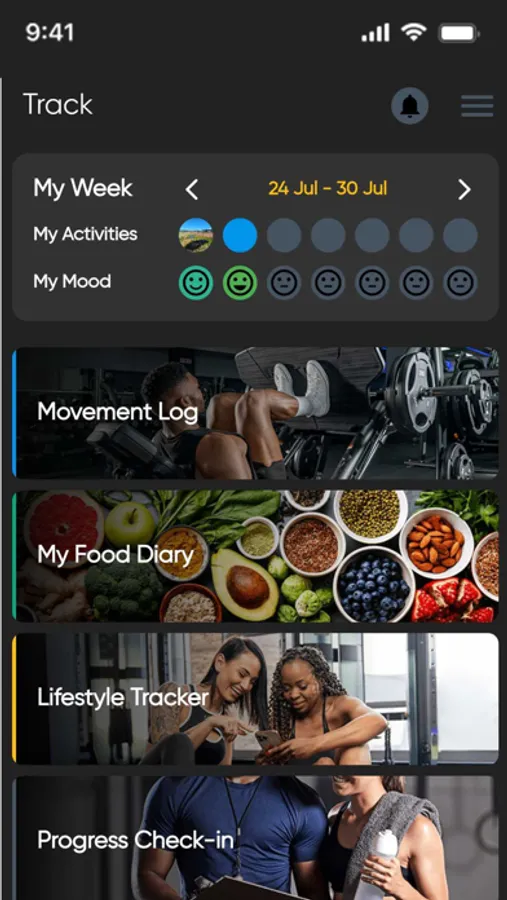 Our comprehensive tracking feature lets you monitor your progress across workouts, nutrition, and other healthy habits such as hydration, sleep, and mood. Visualize your progress, identify areas for improvement, and stay motivated as you witness the positive changes in your fitness journey.