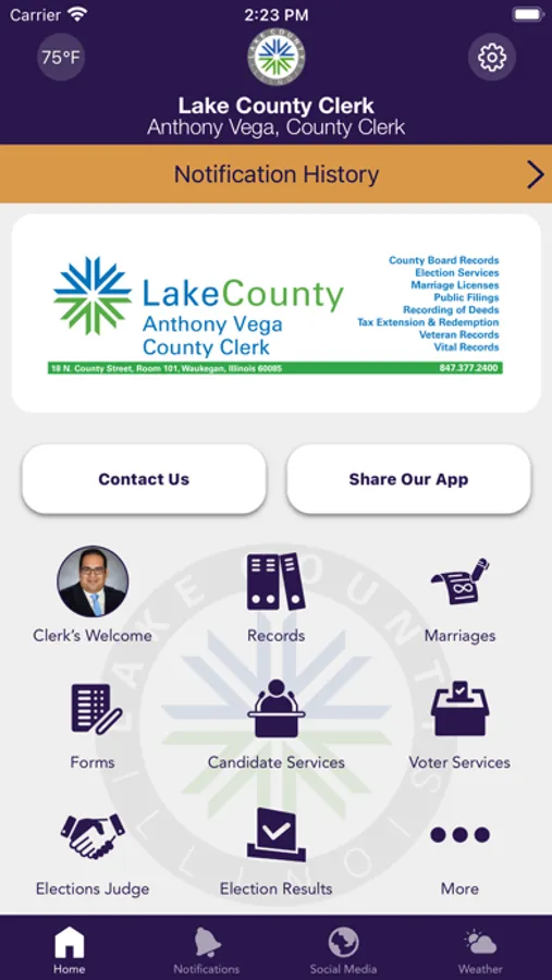 The Lake County Clerk mobile application is an interactive app developed to help improve communication with area residents.