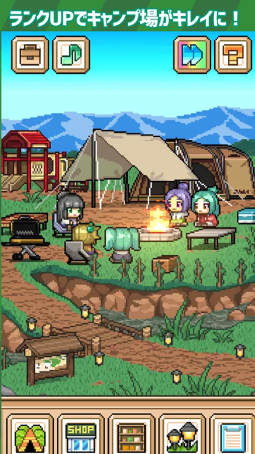 「ランク」がアップすると荒れた土地が綺麗になり、「デコレーション」でより素敵なキャンプ場にすることができます。