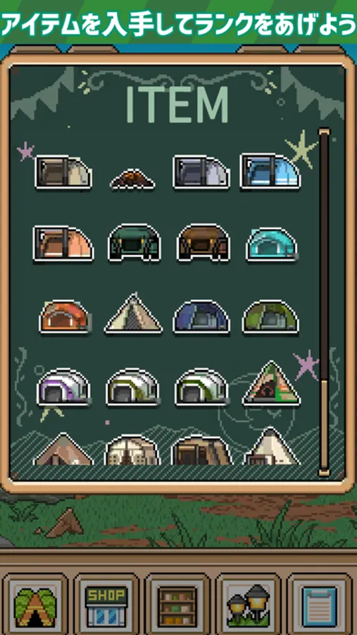 「ギア」が増えれば一度に入手できる「コイン」や「来客」も増えてキャンプ場がにぎやかに!