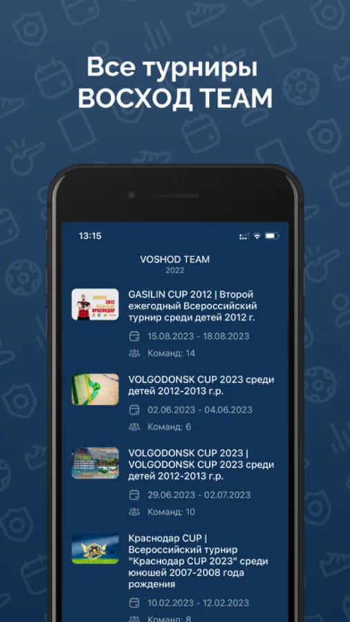 Всё о турнирах ВОСХОД TEAM: календарь матчей и результаты, подробные протоколы матчей, всегда актуальная турнирная таблица и персональная статистика.