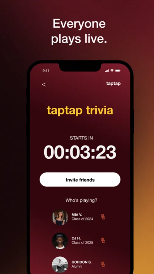 Note: Only USC students/alumni are eligible for prizes at the moment. More schools will be launched in the near future. Email gsun@taptaplive.com if you would like your school launched