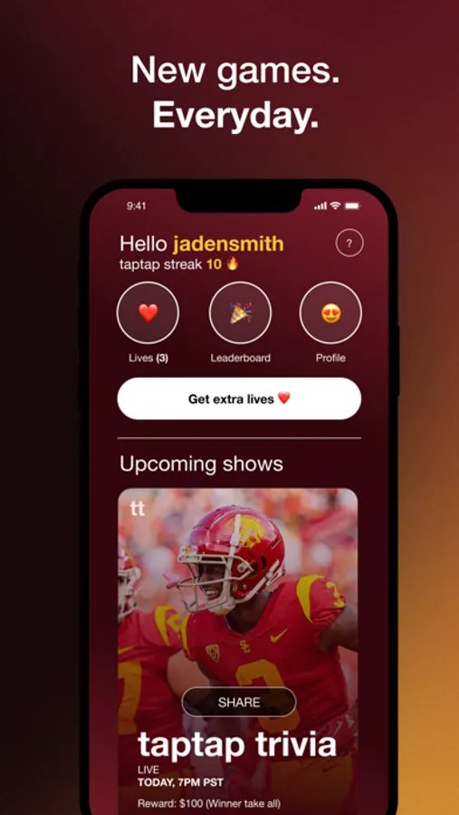 TapTap Trivia is a daily live trivia game. Answer 10 questions right and win a prize. It's free to play, forever.